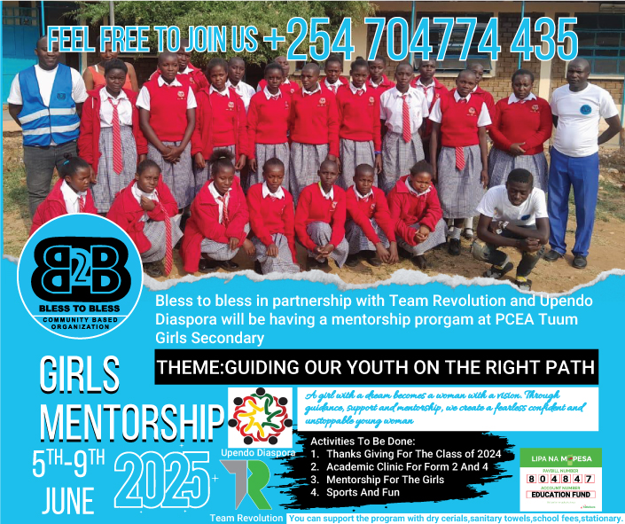 Bless to bless in partnership with Team Revolution and Upendo Diaspora will be having a mentorship program at PCEA Tuum Girls Secondary school in Samburu.
